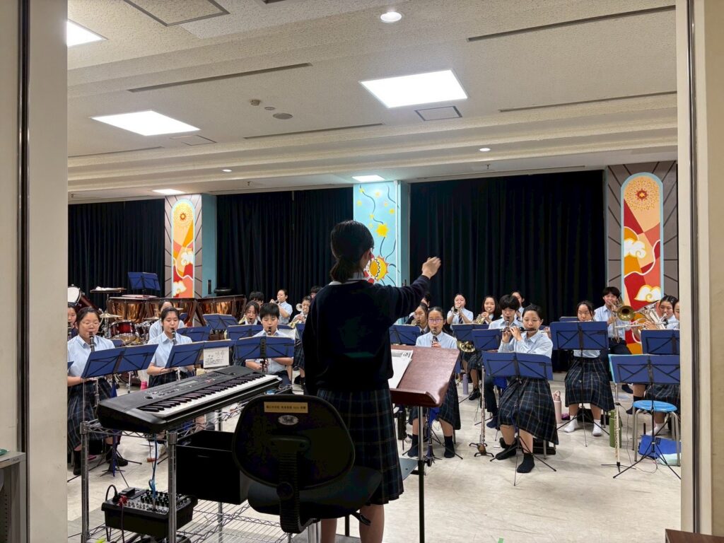 吹奏楽部は以前は座奏中心の活動を行っていたが、前顧問の谷本卓(たにもと・たかし)先生が率いた7年間はマーチング活動にも積極的に取り組んだ。座奏とマーチングの両立は容易ではないが、谷本先生は「マーチング活動は人間力の育成に繋がる。座奏だけでは気付けないところをマーチングで培える」と提唱し、活動を促したという。2023(令和5)年11月に大阪城ホールで開催された「第36回全日本マーチングコンテスト(全日本吹奏楽連盟、朝日新聞社主催)」においては、関西代表として出場し、満点の金賞を受賞して日本一に輝いた実績を持つ実力校である。